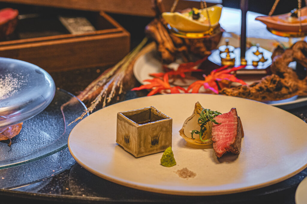 もうひとつは、「金目鯛のパイ包み」に続いてご提供する「生粋かながわ和牛フィレ」。魚と肉の両方を味わえる、贅沢な構成となっております。